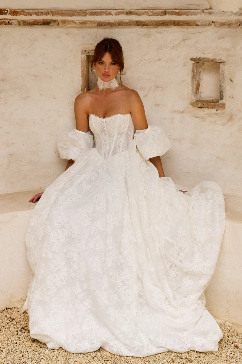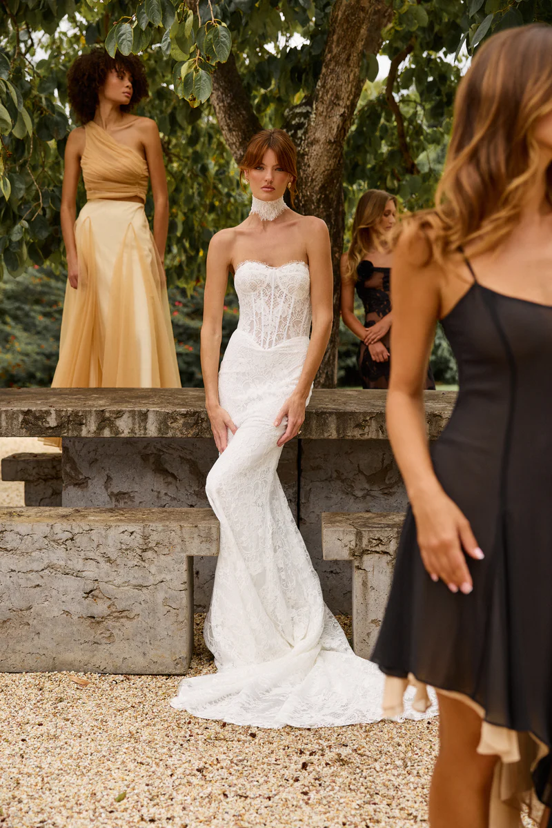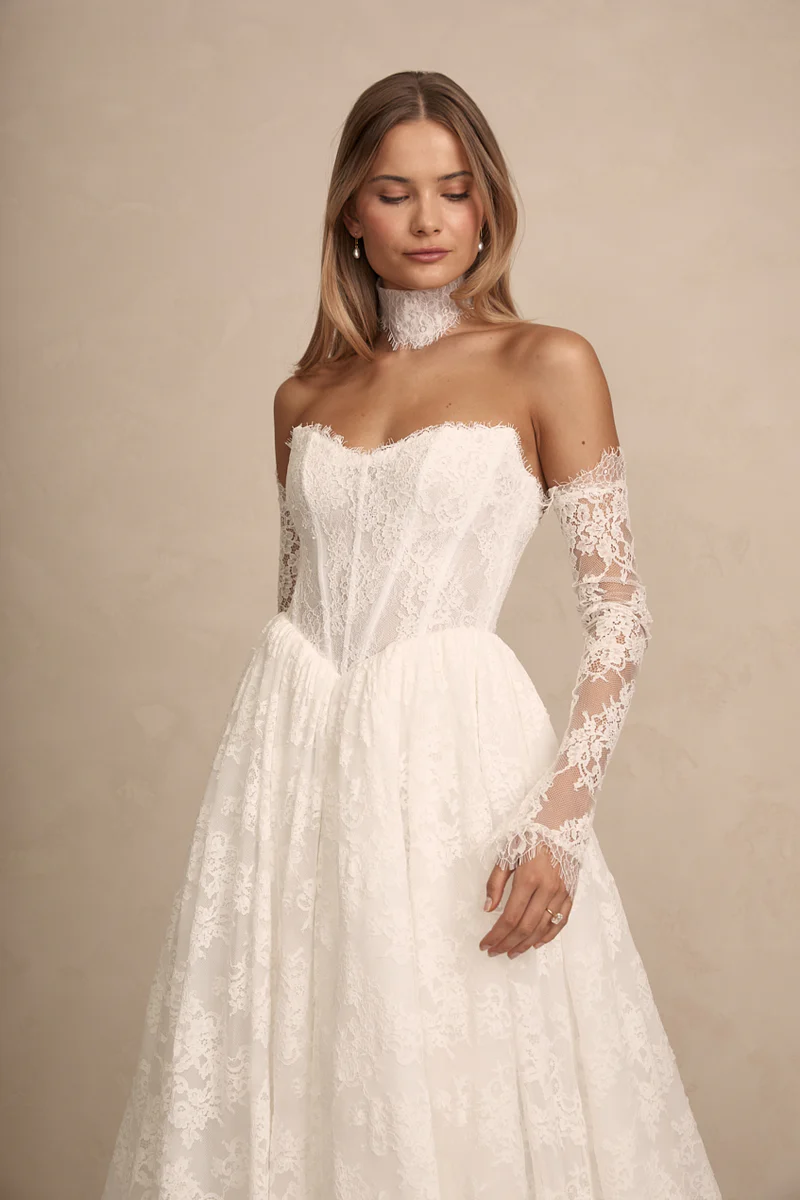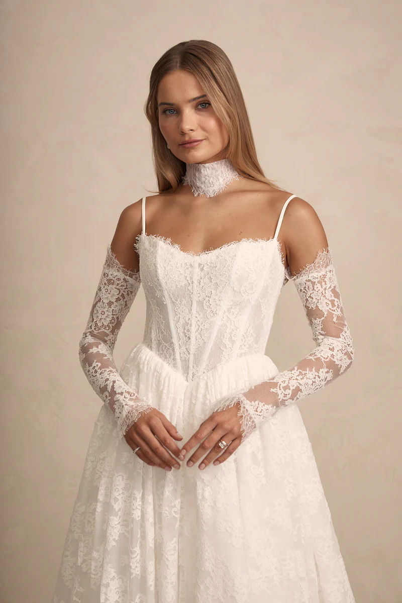 Make a statement with our showstopping Chantilly Choker. Perfect for the daring bride who wants to break free from bridal boundaries and put a stunning twist on a classic lace gown.