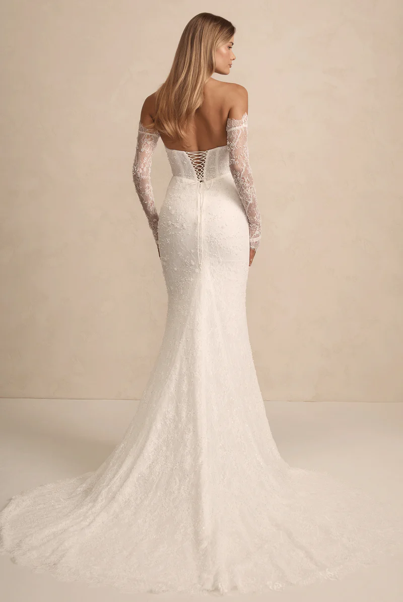 Available in both signature pebble and classic ivory, our Haven Chantilly Sleeves take our jaw-dropping Haven gown to a whole new level of elegance and provide the perfect styling option for brides wanting two incredible, unique looks on their wedding day.