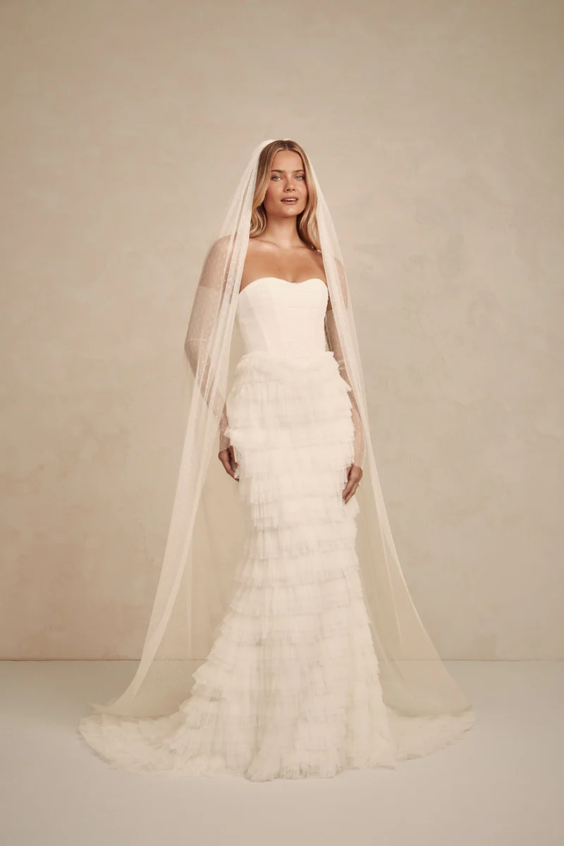 Your dress will be delivered 10-12 weeks before your wedding date. We will email you to confirm the exact date.
