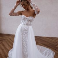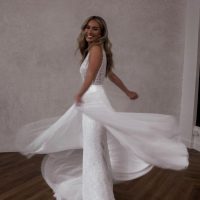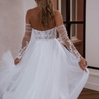 Our Removable Flowy Skirt with gap looks amazing with any of our dresses that have a waist band! You get two looks on your wedding day! She is made from the softest tulle!